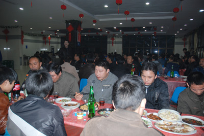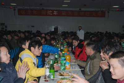 席間,工會(huì)主席魯小林、副主席高文生奔波兩地,向每一位員工表達(dá)了新春的問(wèn)候和祝福,并囑咐大家一定要多打電話給家鄉(xiāng)的親人表示祝福和問(wèn)候,同時(shí),對(duì)員工們?yōu)闁|華的發(fā)展付出的辛勤勞動(dòng)表達(dá)了感激之情。廣大員工在同吃年夜飯,同喝喜慶酒,同吃餃子、同慶佳節(jié)之際,也促進(jìn)了彼此的交流、增強(qiáng)了彼此的感情。整個(gè)年夜飯活動(dòng)始終處在一派熱鬧、祥和的氛圍之中。
