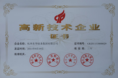 東華集團(tuán)與下屬自強(qiáng)公司于2011年9月分兩批先后根據(jù)《高新技術(shù)企業(yè)認(rèn)定管理辦法》和《高新技術(shù)企業(yè)認(rèn)定管理工作指引》有關(guān)規(guī)定,經(jīng)地方認(rèn)定工作辦公室初審和專家評(píng)審等程序,對(duì)企業(yè)的經(jīng)營(yíng)業(yè)績(jī)、科研投入比例、高新產(chǎn)品、研發(fā)組織管理水平、核心自主知識(shí)產(chǎn)權(quán)、科技成果轉(zhuǎn)化能力及科技人員比例、財(cái)務(wù)成長(zhǎng)性等指標(biāo)進(jìn)行了全面、嚴(yán)格的考察,東華集團(tuán)和自強(qiáng)公司各項(xiàng)業(yè)績(jī)指標(biāo)均達(dá)到國(guó)家級(jí)“高新技術(shù)企業(yè)”的要求,順利通過審核。2012年4月份正式獲得由浙江省科學(xué)技術(shù)廳、浙江省財(cái)政廳、浙江省國(guó)家稅務(wù)局、浙江省地方稅務(wù)局聯(lián)合頒發(fā)的國(guó)家級(jí)“高新技術(shù)企業(yè)”認(rèn)定證書,有效期三年。