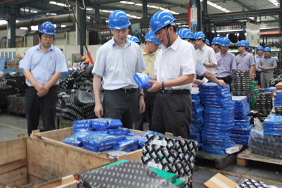 99,余杭區區長姜軍、副區長屠冬冬率區政府辦、安全監管局、經發局、公安分局、質監余杭分局、貿易局、消防大隊、新聞媒體記者及余杭經濟開發區相關科室負責人共十多人到我集團進行安全生產大檢查。集團董事長宣碧華、副總經理廖杭州等高層陪同姜區長一行對南區生產現場進行了安全檢查。