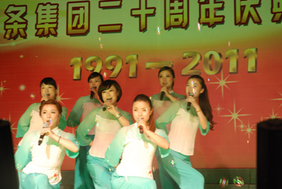 整場慶典晚會由18個文藝節目組成,其中16個節目由東華員工自編、自演,這些節目包括歌舞、小品、雜技、啞劇等等,節目集思想性、藝術性和觀賞性為一體。員工們以優美的歌聲、輕盈的舞姿、蓬勃的激情,充分展示了東華創建20年來所發生的巨大變化和取得的輝煌業績,栩栩如生地體現了東華兒女團結奮進、求真務實、開拓創新的良好形象和精神風貌。宣碧華董事長的一首清唱《讀毛主席的書》,把整臺晚會推向了高潮,員工們掌聲不斷。