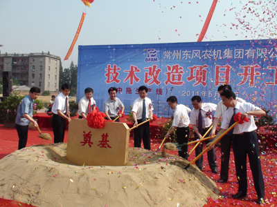 5月20日上午,常州東風(fēng)農(nóng)機(jī)集團(tuán)有限公司 “月產(chǎn)6500臺(tái)輪拖零部件能力技改”等3個(gè)技改項(xiàng)目舉行奠基典禮,拉開(kāi)了東風(fēng)農(nóng)機(jī)“十二五”新一輪大發(fā)展的序幕。鐘樓區(qū)委書記徐偉南、區(qū)長(zhǎng)潘冬鈴、東風(fēng)農(nóng)機(jī)董事長(zhǎng)宣碧華等領(lǐng)導(dǎo)出席了奠基典禮。