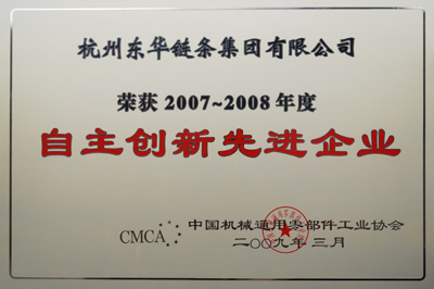 鑒于東華鏈條集團(tuán)在國(guó)內(nèi)鏈條領(lǐng)域中不斷自主創(chuàng)新,填補(bǔ)了多項(xiàng)國(guó)內(nèi)空白,為我國(guó)的鏈條事業(yè)作出了杰出貢獻(xiàn)。日前,中國(guó)機(jī)械通用零部件工業(yè)協(xié)會(huì)授予東華鏈條集團(tuán)“2007-2008年度自主創(chuàng)新先進(jìn)企業(yè)”榮譽(yù)稱號(hào)。