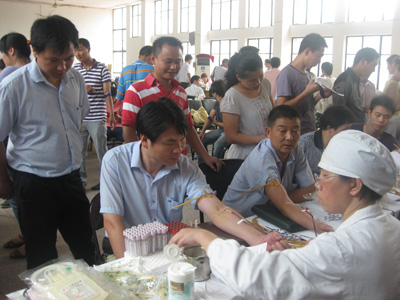 由于杭州市血庫告急,7月14日,東華集團積極響應江干區獻血辦的號召,組織32名職工參加了由筧橋鎮組織的無償獻血活動,累計獻血量達7000毫升。