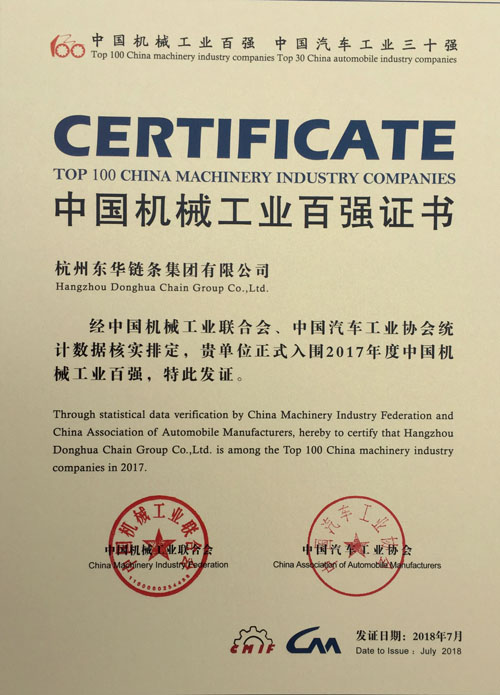 日前,第十四屆中國機械工業百強企業信息發布會在山東臨沂召開。會上發布了2017年度中國機械工業百強企業名單。東華鏈條集團以全年穩健上升的經營業績居第56位,比2016年上升6位,這是東華鏈條集團連續三年榮登中國機械工業百強榜。