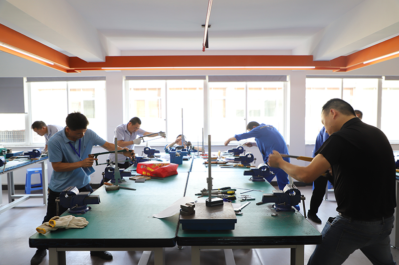 本次鉗工技能比武共有來自春風(fēng)動力、老板電器、東華鏈條、浙江健拓等10家企業(yè)的53名選手參加,考慮到公平公正,選手分為“普通組”和“高級組”進(jìn)行比賽,共進(jìn)行三場比賽。比賽中,參賽選手認(rèn)真識圖、精準(zhǔn)劃線,運用鋸、鉆、挫等技藝,以最佳水平將臺鉗上的毛坯件逐漸變成符合標(biāo)準(zhǔn)的成品。