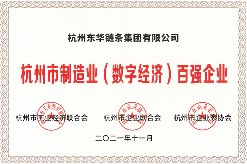 日前,杭州市工業(yè)經(jīng)濟聯(lián)合會、杭州市企業(yè)聯(lián)合會、杭州市企業(yè)家協(xié)會正式發(fā)布《2021杭州市 制造業(yè)(數(shù)字經(jīng)濟)百強企業(yè)》名單。東華鏈條集團榮登杭州市制造業(yè)(數(shù)字經(jīng)濟)百強企業(yè)榜第41位。