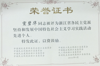 東華鏈條集團董事長宣碧華獲“浙江省民主黨派學習實踐活動先進個人”稱號