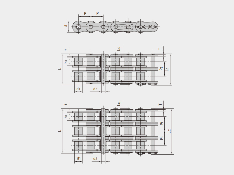 ● 自動扶梯驅(qū)動鏈分為主驅(qū)動鏈和扶手帶驅(qū)動鏈,按照ISO 606標(biāo)準(zhǔn)進(jìn)行設(shè)計(jì),其互換性尺寸與標(biāo)準(zhǔn)滾子鏈一致,主要以A系列、B系列滾子鏈及其加強(qiáng)型鏈條為主。