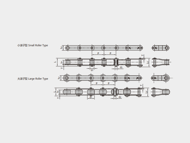 ● 輸送用滾子鏈的基鏈尺寸符合ISO、ASME/ANSI、DIN、JIS等標(biāo)準(zhǔn)的規(guī)定,主要有A系列直邊鏈板滾子鏈、B系列直邊鏈板滾子鏈、短節(jié)距帶附件輸送鏈、雙節(jié)距輸送鏈、雙節(jié)距帶附件輸送鏈等;