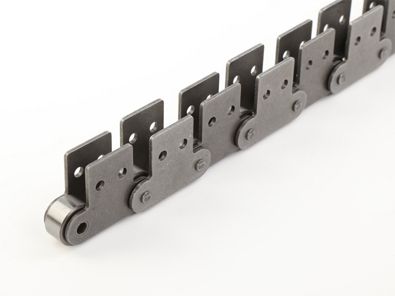 ● 輸送用滾子鏈的附件根據(jù)使用要求設(shè)計(jì)不同的結(jié)構(gòu)形式,具有廣泛性、多樣性等特點(diǎn),其中水平壓彎附板、帶孔直立附板、加長銷軸等附件應(yīng)用較為廣泛。