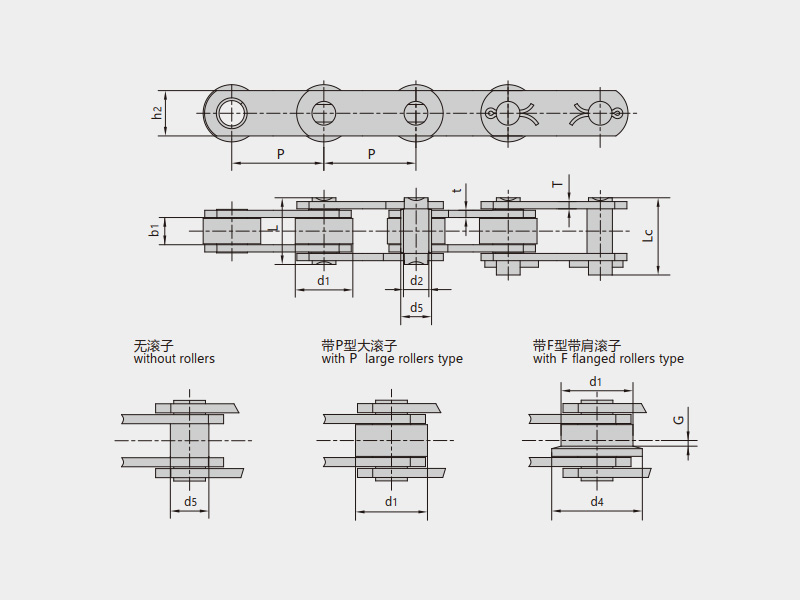 帶S型小滾子 | 帶P型大滾子 | 帶F型帶肩滾子 |